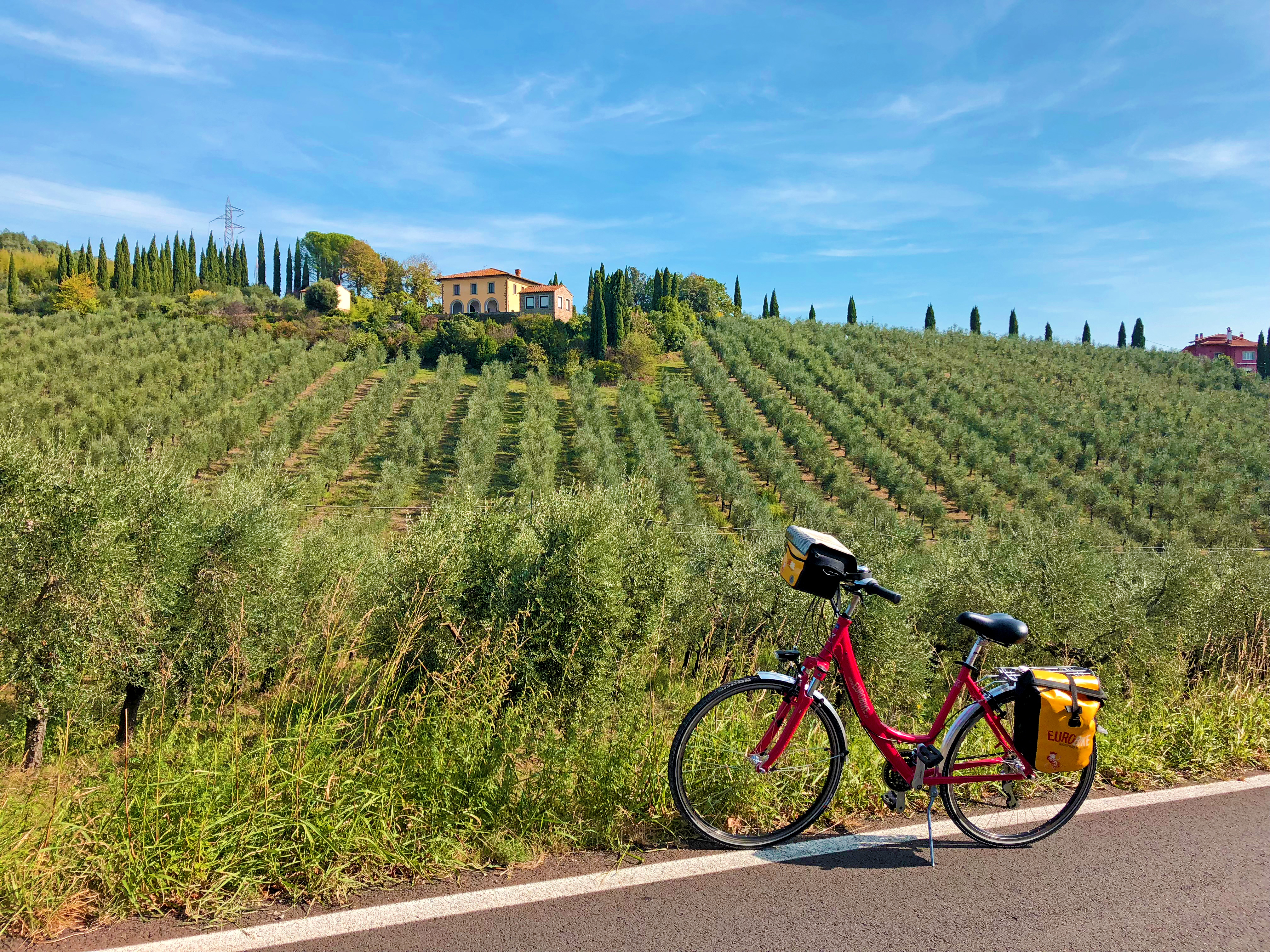 ItaliaLa Toscana és mundialment coneguda pel seu art, per la bellesa dels seus paisatges, els pobles damunt dels pujols, la ciutat de Dante Alighieri i de l'origen de l'estil del renaixement. Els seus habitants, orgullosos del seu esplèndid patrimoni, s'esforcen, dia a dia, per a conservar-ho i millorar-ho. Per aquestes raons, a Toscana la bellesa és un adjectiu implícit fins i tot en el més quotidià. Representa cultura rica, acolorits ocre, olivars verds, etc. La nostra ruta està pensada per a allotjar-se en un sol Hotel, en el Montecatini Terme on serà el nostre punt de partida per a les excursions que farem cada dia de la ruta. Anirem a la Vall de Val di Nievole a través d'olivars, després anirem al Monti Pisani on tindràs una impressió de veure Pisa i la mar junts, anirem a Florència amb tren on podrem veure palaus, esglésies, museus, etc. Farem una excursió a San Gimignano i també a Vinci lloc de naixement de Leonardo da Vinci, i el nostre últim dia de ruta ens portarà a Lucca. És una regió màgica, que atreu turistes de tot el món, i la millor manera de descobrir-la és amb bicicleta!