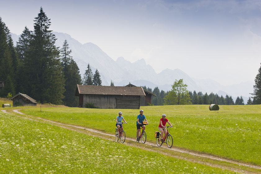 Desayuno. En primer lugar, pedaleará por la reserva natural de Murnauer Moos (la mayor zona pantanosa de Europa Central). Después, continuará su recorrido por la naturaleza virgen siguiendo el río Loisach hasta Garmisch-Partenkirchen. La etapa es intencionadamente breve. Por lo tanto, aún queda tiempo suficiente para una etapa corta con el Zugspitzbahn, un ferrocarril de montaña. A una altitud de 2962 metros, tendrá una maravillosa vista de los Alpes. Alojamiento.
