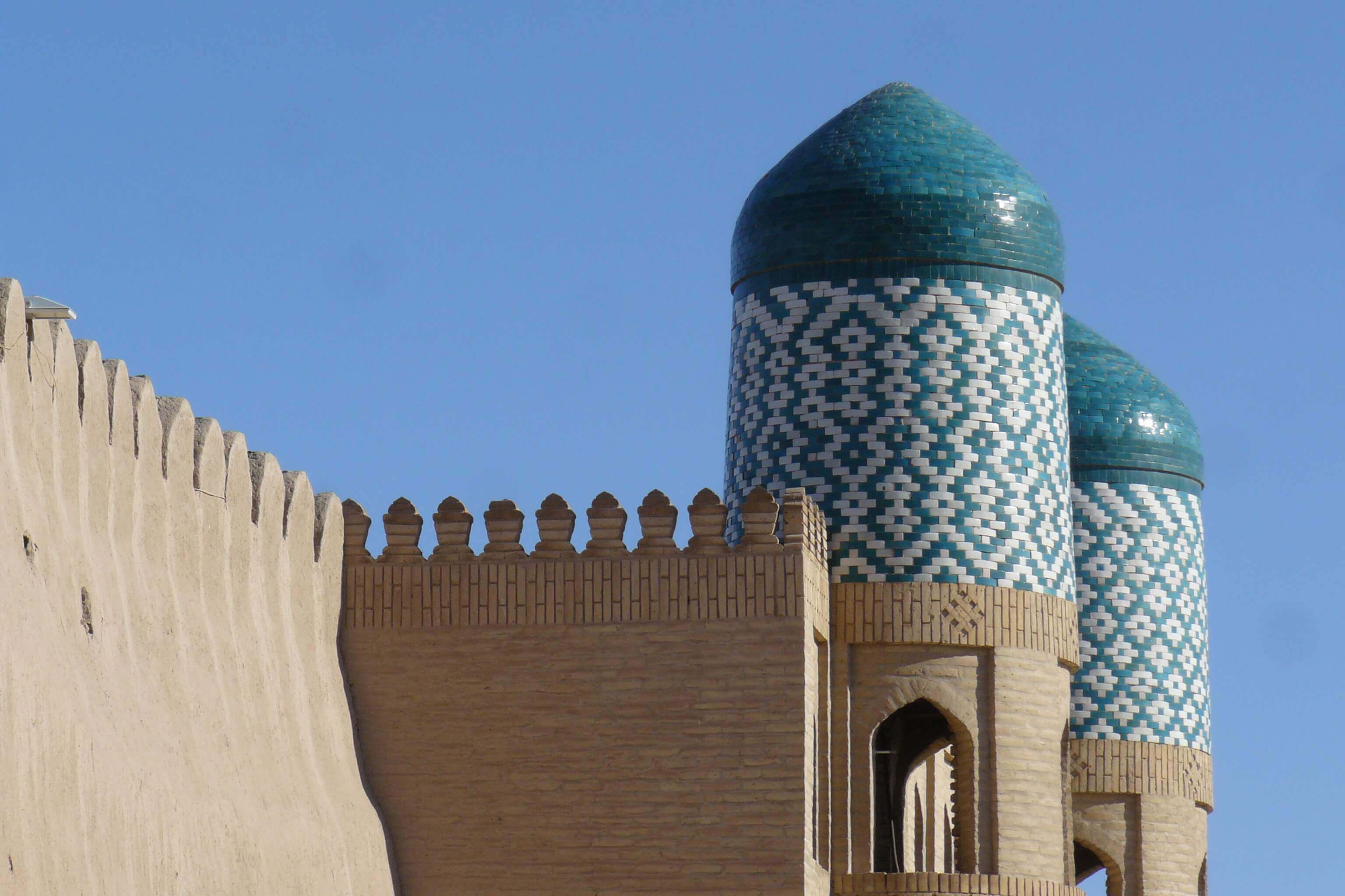 Desayuno temprano en el hotel. Traslado al aeropuerto para tomar el vuelo hacía Urgench (según el horario de vuelos). Llegada a Urgench; traslado a Khiva (30km), alojamiento en el hotel. City tour en el complejo arquitectónico Ichan-Kala (siglos XII-XIX): Kalta Minor, Castillo Kunya Ark, Madraza Mohammed Rahim Khan, Minarete y Madraza Islom Khodja. Almuerzo en restaurante local. Seguimos con las visitas en Khiva: Complejo arquitectónico Tash Hovli (harem siglo19), Mausoleo de Pahlavan Mahmud (siglos 14-18), Mezquita Juma(siglo10), Madraza Allikulikhan y etc. Descanso en el hotel.