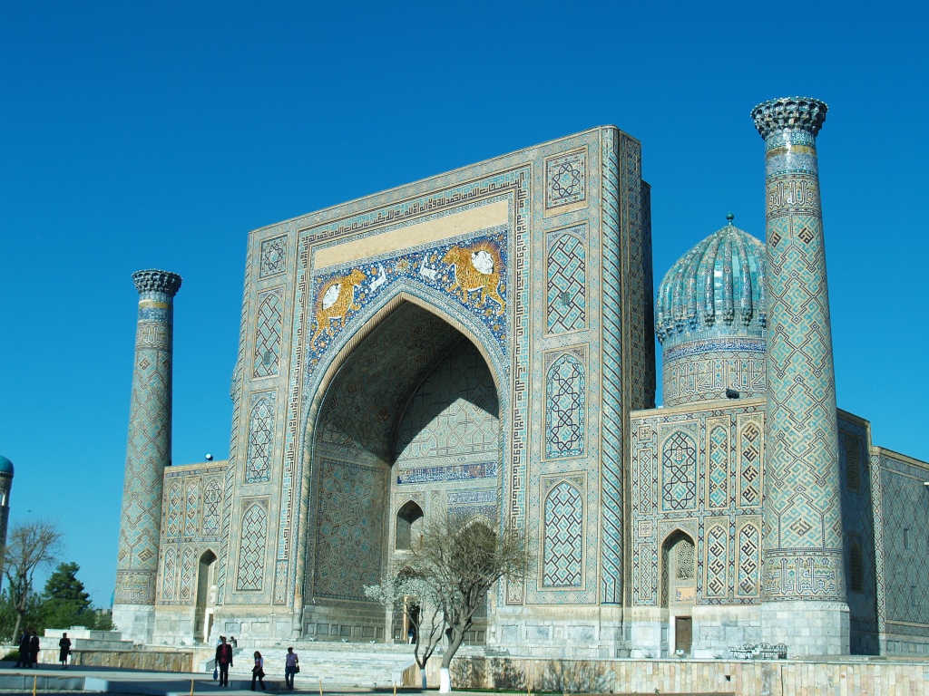 Desayuno en el hotel. Excursión por la ciudad Samarcanda: la Plaza Registán: Madraza Ulughbek (siglo XV), Madraza Shir-Dor (sigloXVII), Madraza Tilla-Kori (siglo XVII), Mausoleo Guri Emir (tumba de Tamerlán, siglos XIV-XV). Almuerzo en restaurante local. Seguimos con las visitas: Mezquita Bibi-Khonum, Bazar Siab. Descanso en el hotel.